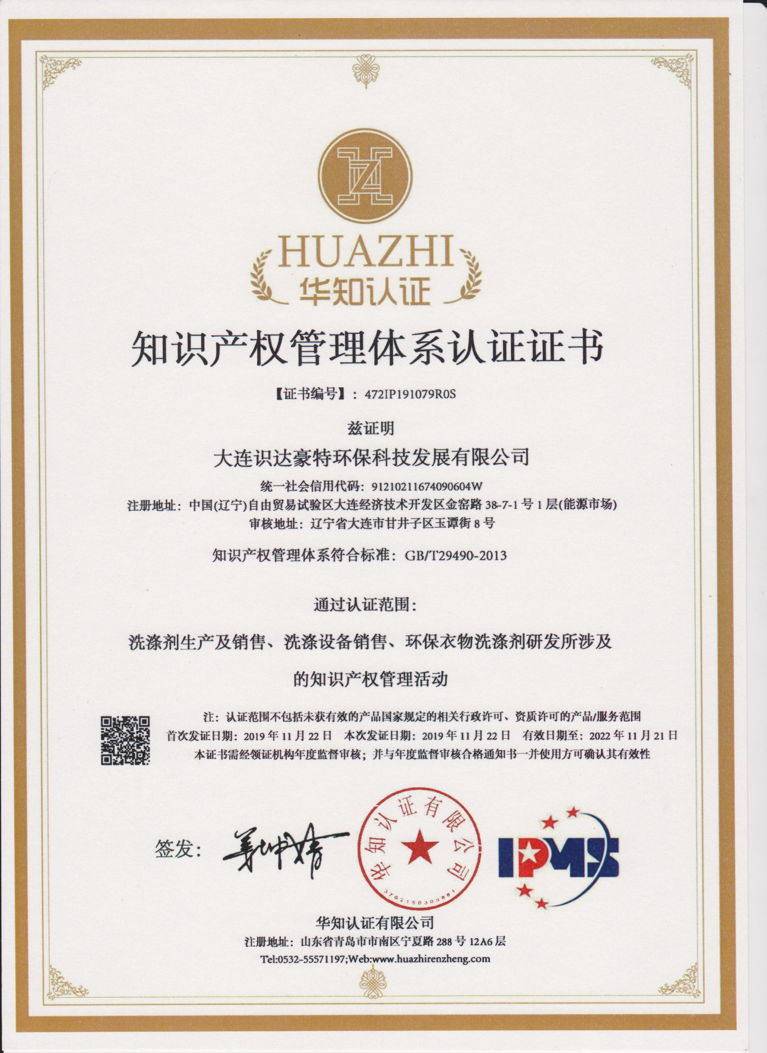 知识产权管理体系认证证书